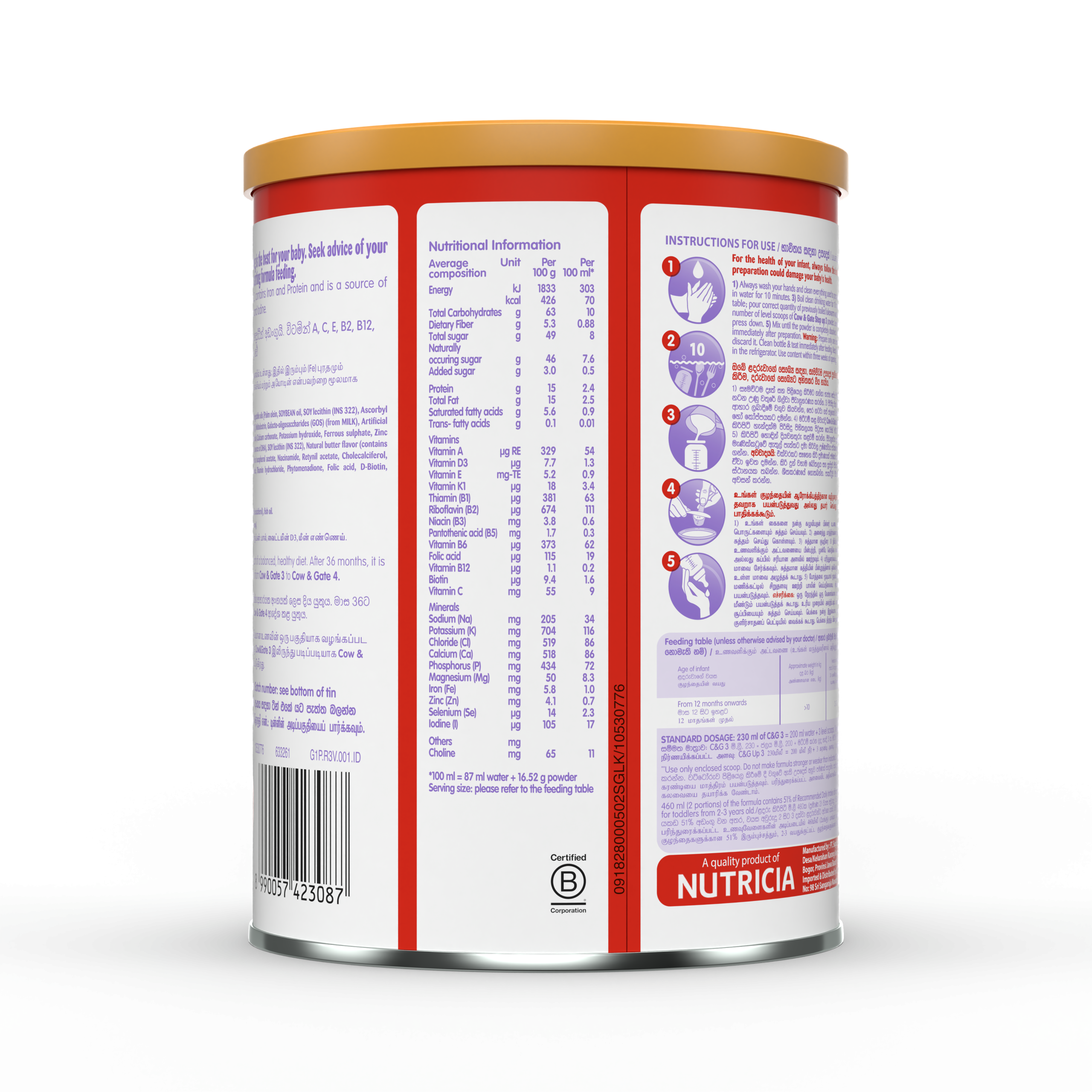 Cow & Gate Step Up 3 is designed to support the nutritional needs of young children aged 1 to 3 years. This premium formula contains essential vitamins, minerals, and nutrients to aid in growth and development, offering a balanced and delicious solution for young ones transitioning from infancy to toddlerhood.